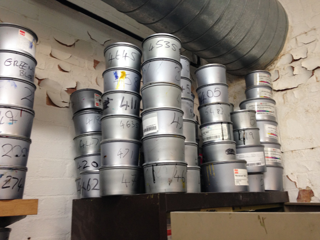 After a few years, if no-one has specified that colour again it has probably passed its sell by date so we empty the ink into a big vat and it gets taken away and recycled into oil products but not into new ink.’